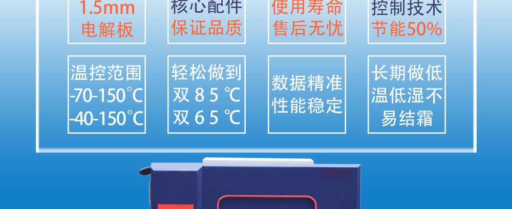 产品型号:JQTH-1000L 品牌:剑 乔 用途:新款恒温恒湿试验箱(JQTH-1000L),主要用来测试各种材料耐热、耐寒、耐干、耐湿的性能。本机采用中英俄文显示彩色触控式屏幕画面,操作简单,程序编辑容易可显示完整的系统操作状咨询热线:13829135130