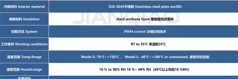 产品型号:JQTH-1200L(非标定制款) 品牌:剑 乔 用途:可程式恒温恒湿试验箱 JQTH-1200L(属于:双开门非标定制款)主要用来测试各种材料耐热、耐寒、耐干、耐湿的性能。本机采用智能中英俄文显示7寸彩色触控式屏幕画面,操作简单,程序编辑咨询热线:13829135130
