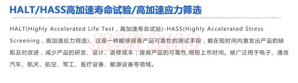 产品型号:按需定制 品牌:剑 乔 用途:HALT(Highly Accelerated Life Test,高加速寿命试验)-HASS(Highly Accelerated Stress Screening,高加速应力筛选)、这是一种能够提高产品可靠性的测试手段,能在短时间内激发出产品的缺陷及时改进咨询热线:13829135130