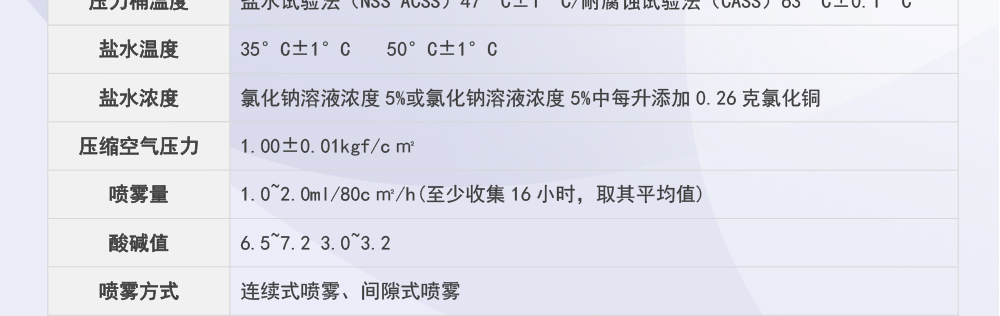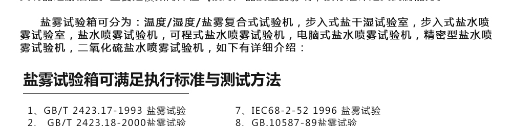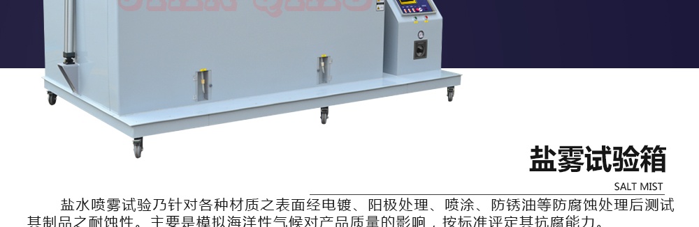 用途:盐雾试验箱可分为:温度/湿度/盐雾复合式试验机,步入式盐干湿试验室,步入式盐水喷雾试验室,盐水喷雾试验机,可程式盐水喷雾试验机,电脑式盐水喷雾试验机,精密型盐水喷雾试
