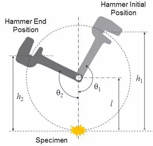 制备有一定形状和尺寸的金属试样,使其具有U形缺口或V形缺口,在夏比冲击试验机上处于简支梁状态,以试验机举起的摆锤作一次冲击,使试样沿缺口冲断,用折断时摆锤重新升起高度差计算试样的吸收功,即为Aku和Akv。