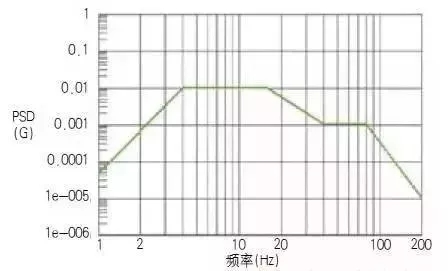 随机振动试验具体测试方法《GB/T 4857.23-2012》中有介绍,这里只介绍三个力学条件量值功率谱密度 (PSD)、加速度均方根 (Grms) 和振动时间。国内外通过采集运输数据,利用统计学制定出随机振动谱。以ASTM D4169-08为例,如图: