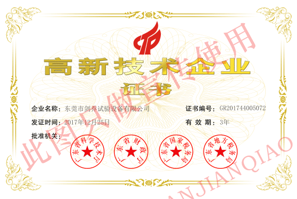 注:图为剑乔高新技术企业证书