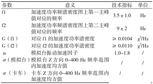 模拟运输台的设计参数主要依据《QJ/T 815.2-94产品公路运输加速模拟试验方法》[3]设定。该标准中规定了模拟运输台的关键技术指标,见表1。