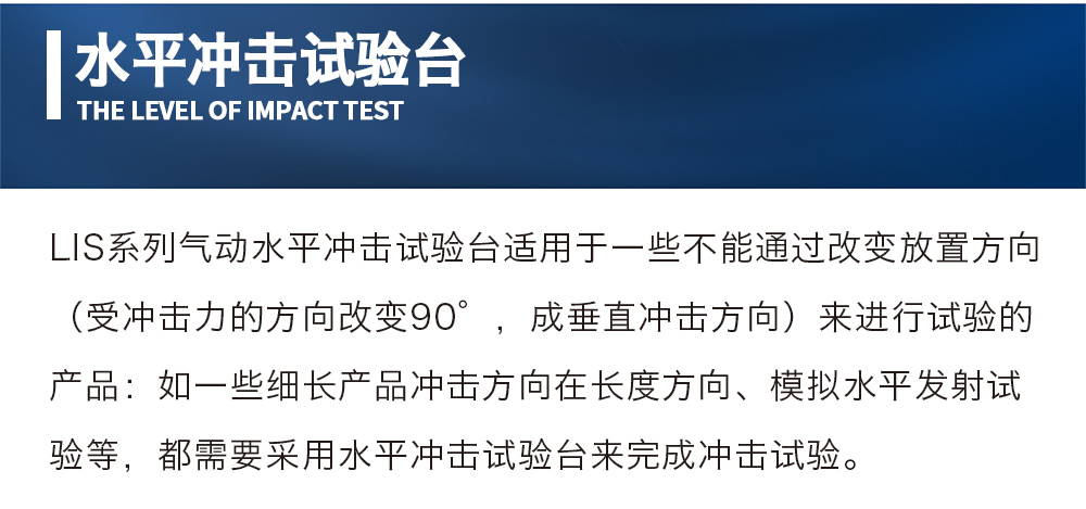 产品型号:LIS-50 品牌:剑 乔 用途:LIS系列气动水平冲击试验台适用于一些不能通过改变放置方向(受冲击力的方向改变90°,成垂直冲击方向)来进行试验的产品:如一些细长产品冲击方向在长度方向、模拟水平发射试验等,都需要采用水平冲击试验台来完成冲击试验咨询热线:13829135130